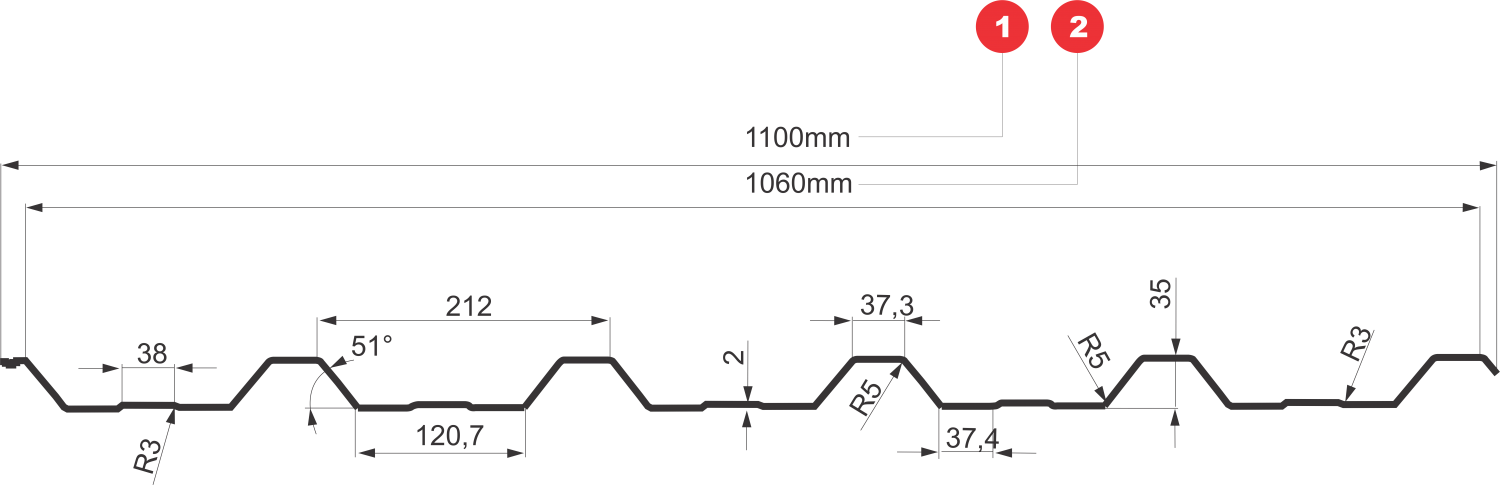 - tabla cutată BILKA T35 este produsă cu o grosime nominală între 0,4 – 1,0 mm, în funcție de cerințele construcției